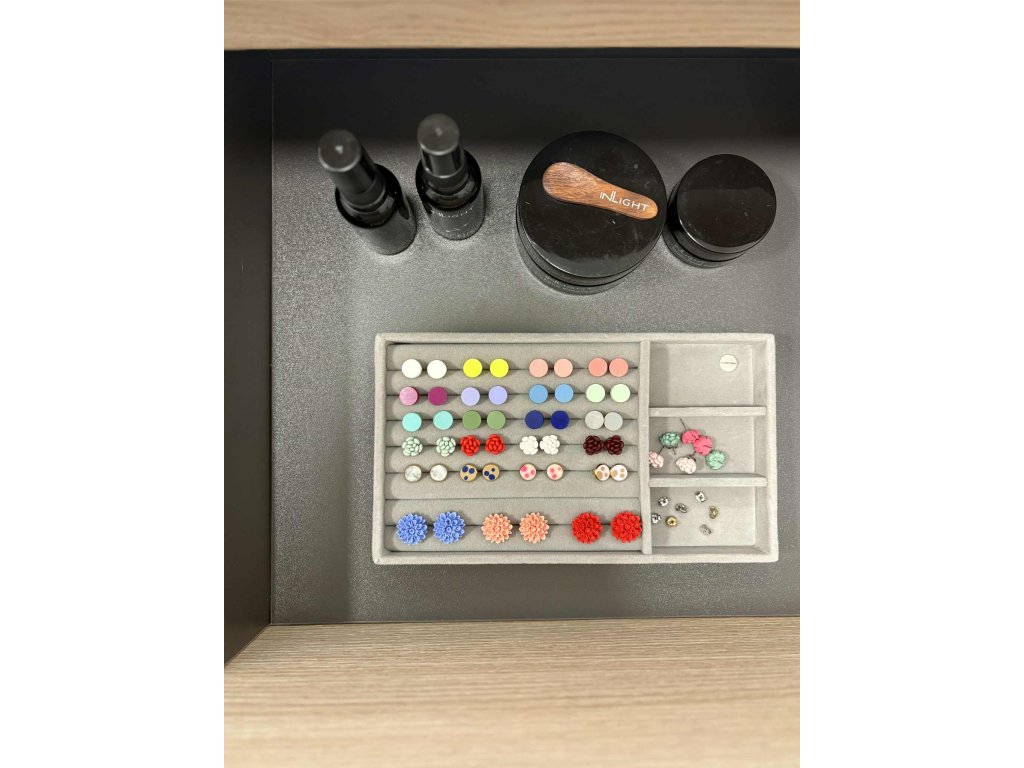 Šperkovnice na náušnice, náramky a třeba i prstýnky a náhrdelníky ozdobená logem Flowerski.