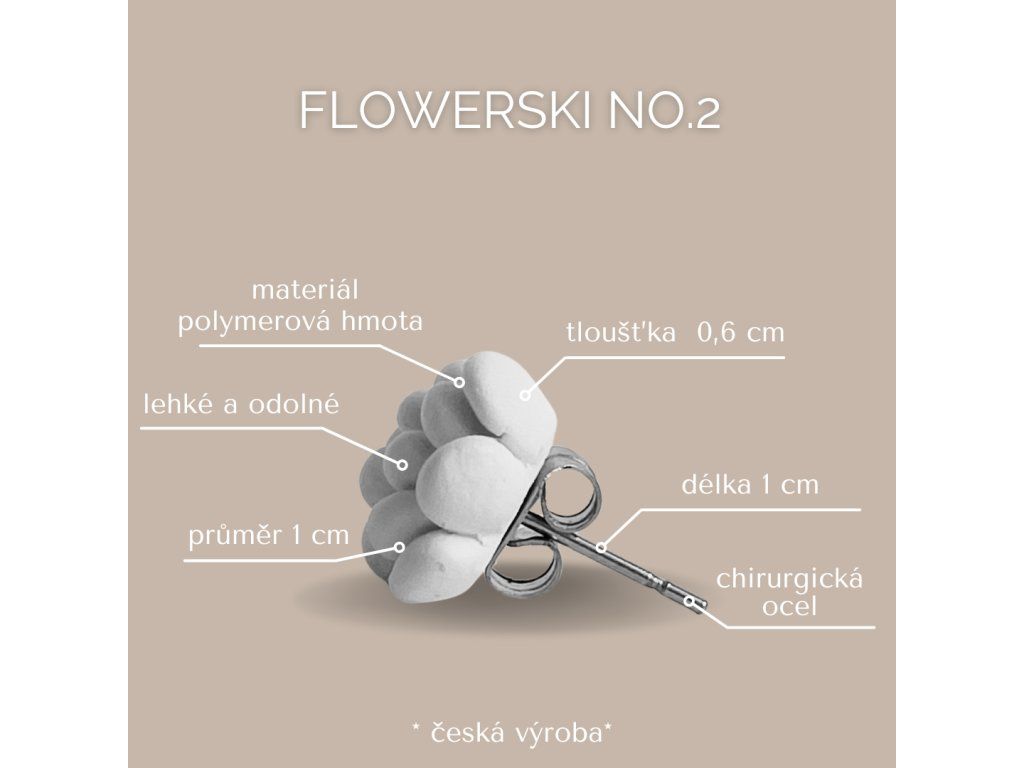 Rozměry: průměr květu 1cm, výška lístků 0,6 cm, cca 1 cm zadní část